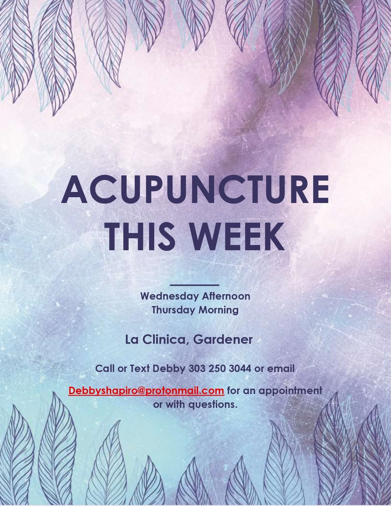 Announcements Check back regularly or follow us on facebook for updates October 16th July 5th, 2025 June 16th, 2025 June 5th, 2025 June 2nd, 2025 May 18th, 2025 May 5th, 2025 Community Acupuncture with Desiree’ DallaGuardia